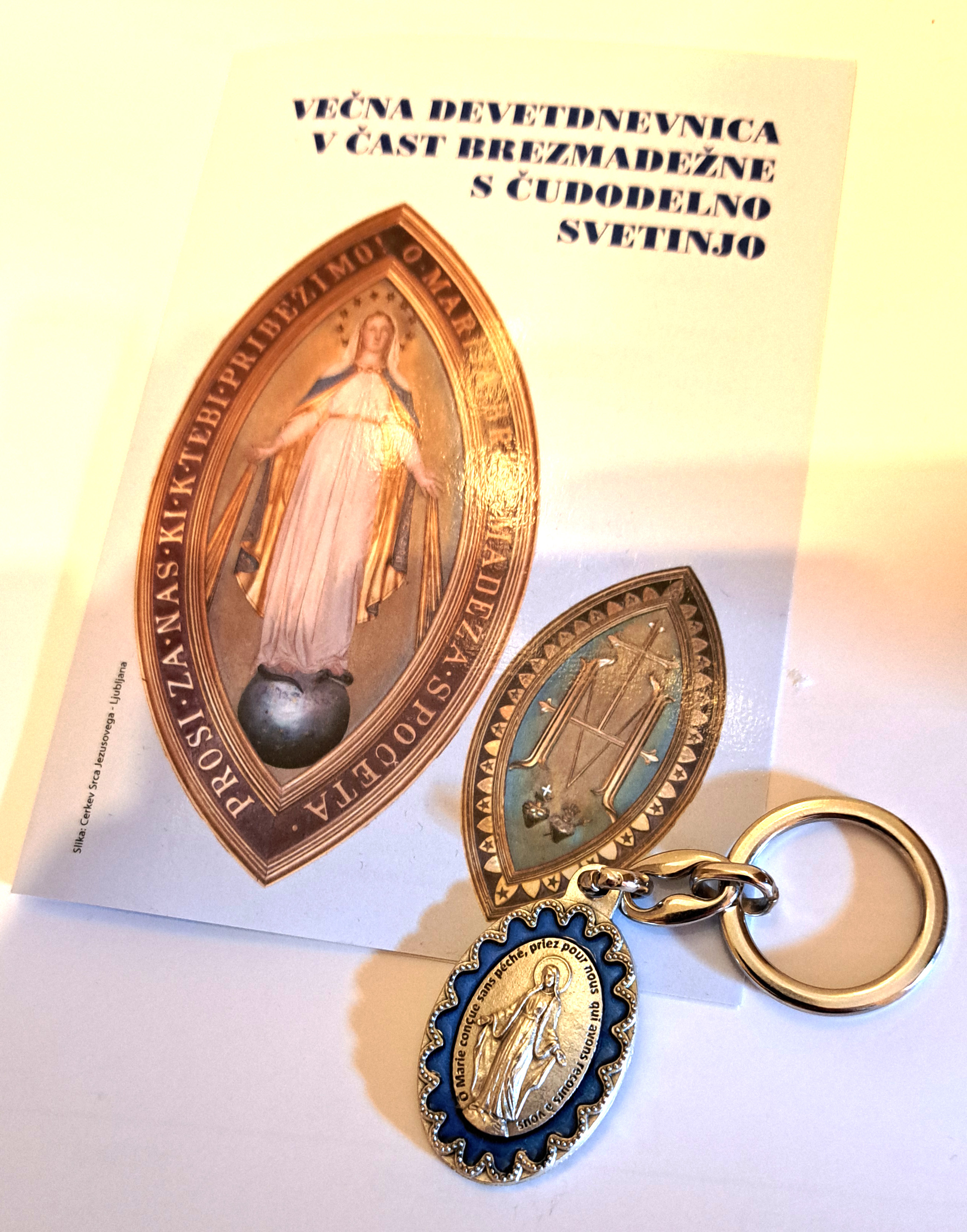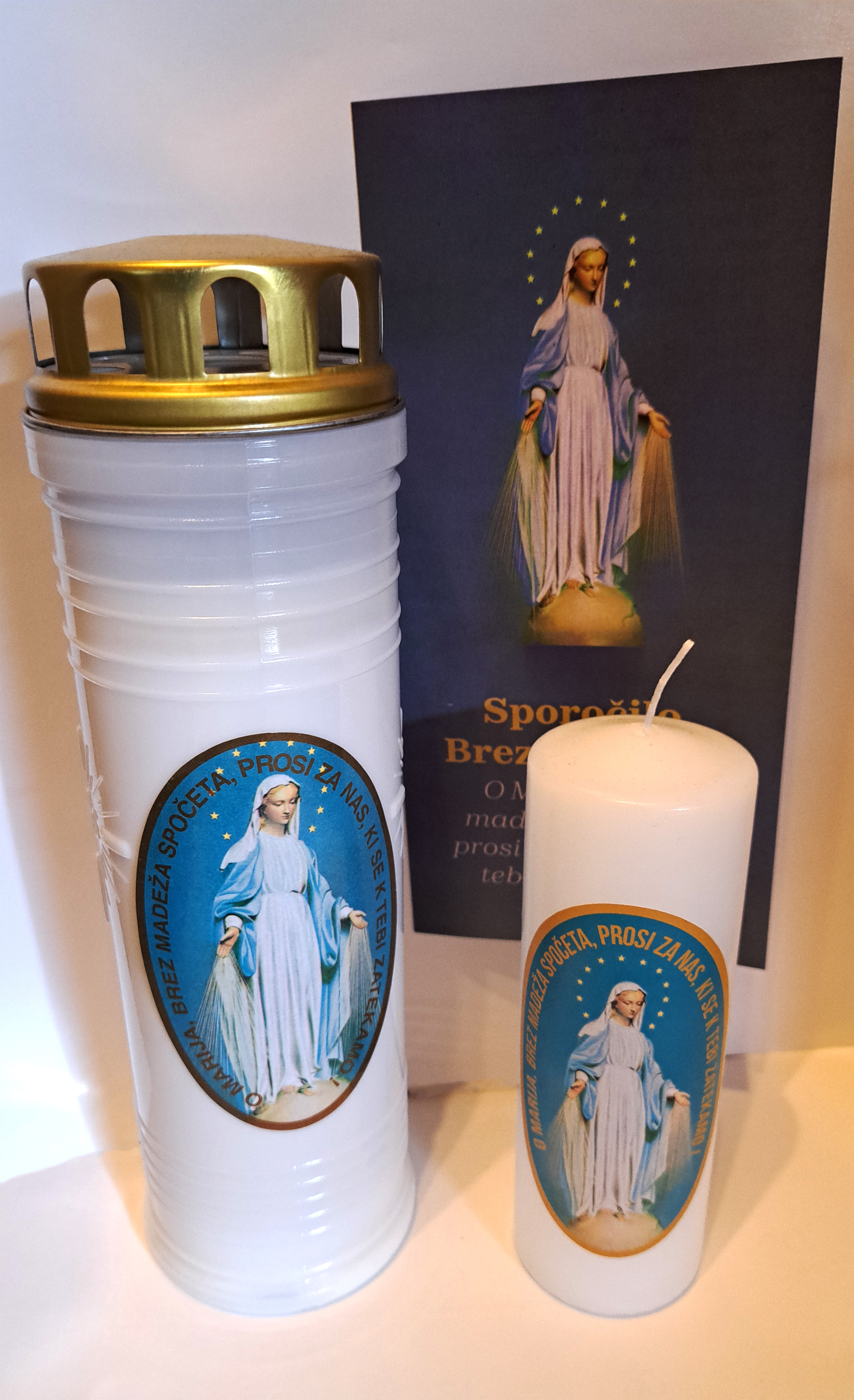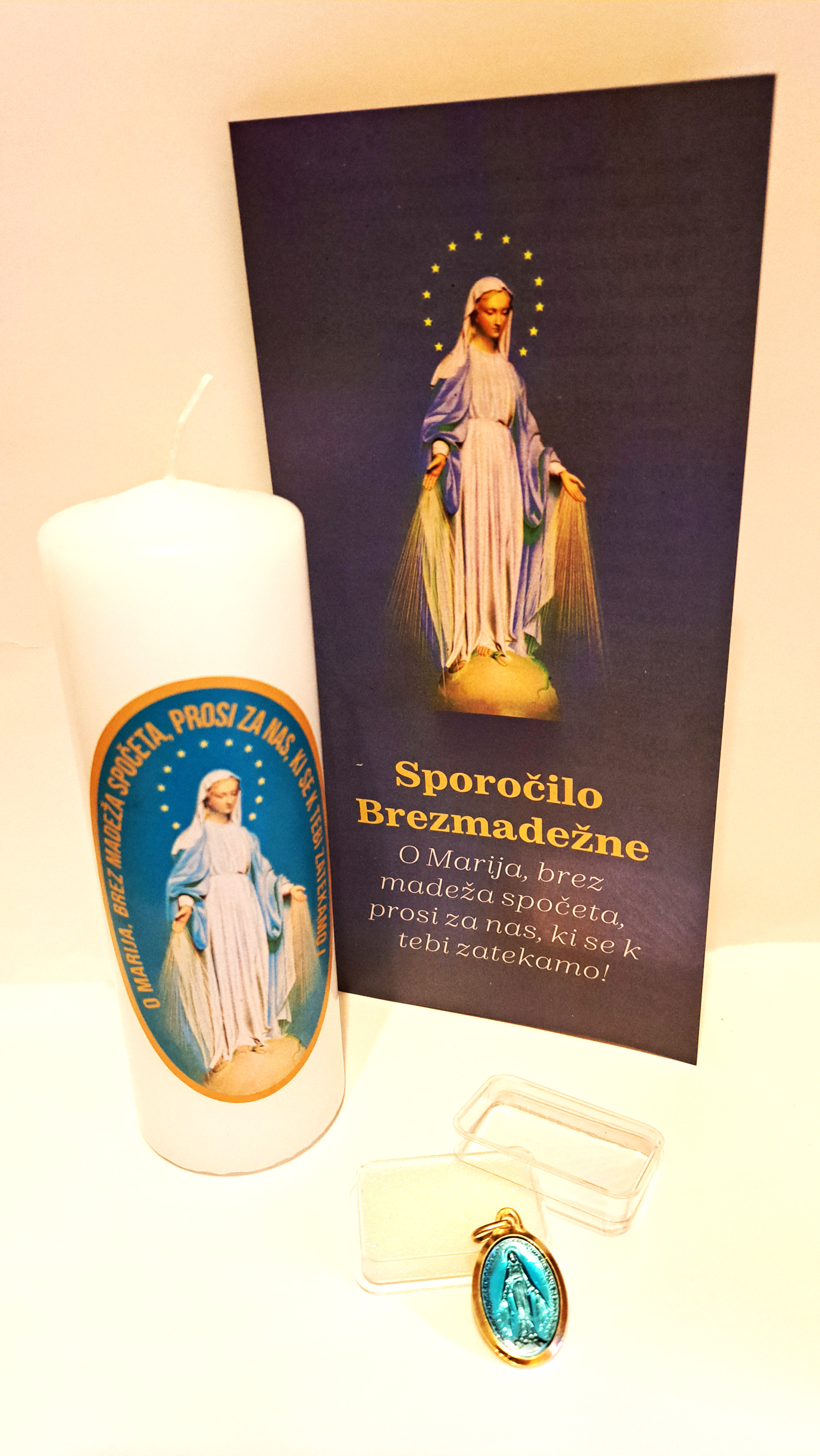 V našem Združenju lahko prejmete čudodelno svetinjo, molitev Večne devetdnevnice v čast Brezmadežne s čudodelno svetinjo, svečke in zgibanke s predstavitvijo čudodelne svetinje.
